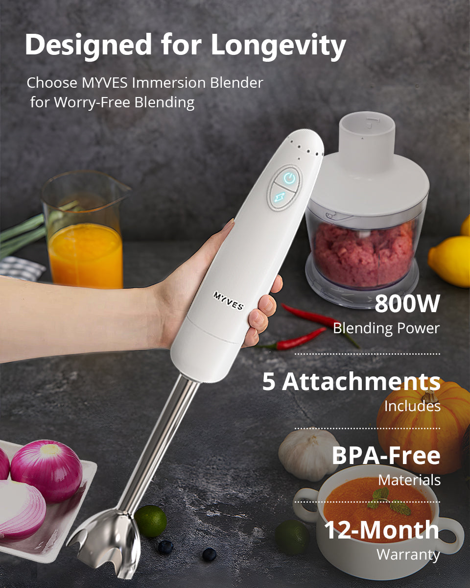 MYVES 5 In 1 Immersion Blender - A2 | 800W with 18 Speeds and Turbo Mode Handheld Blender
