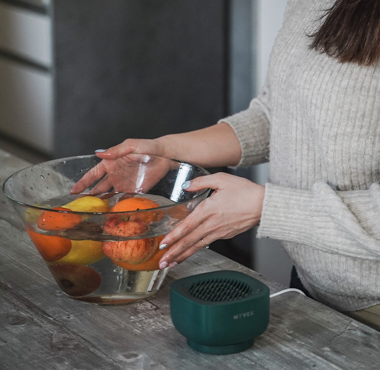 The MYVES-P1 uses advanced OH radical technology to break down pesticides, bacteria, and other contaminants on fruits and vegetables with just tap water, no chemicals needed.