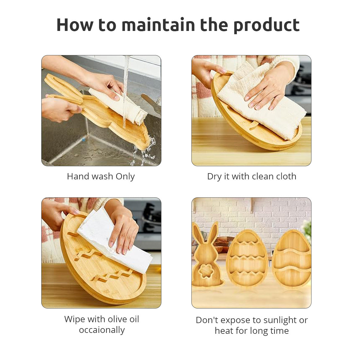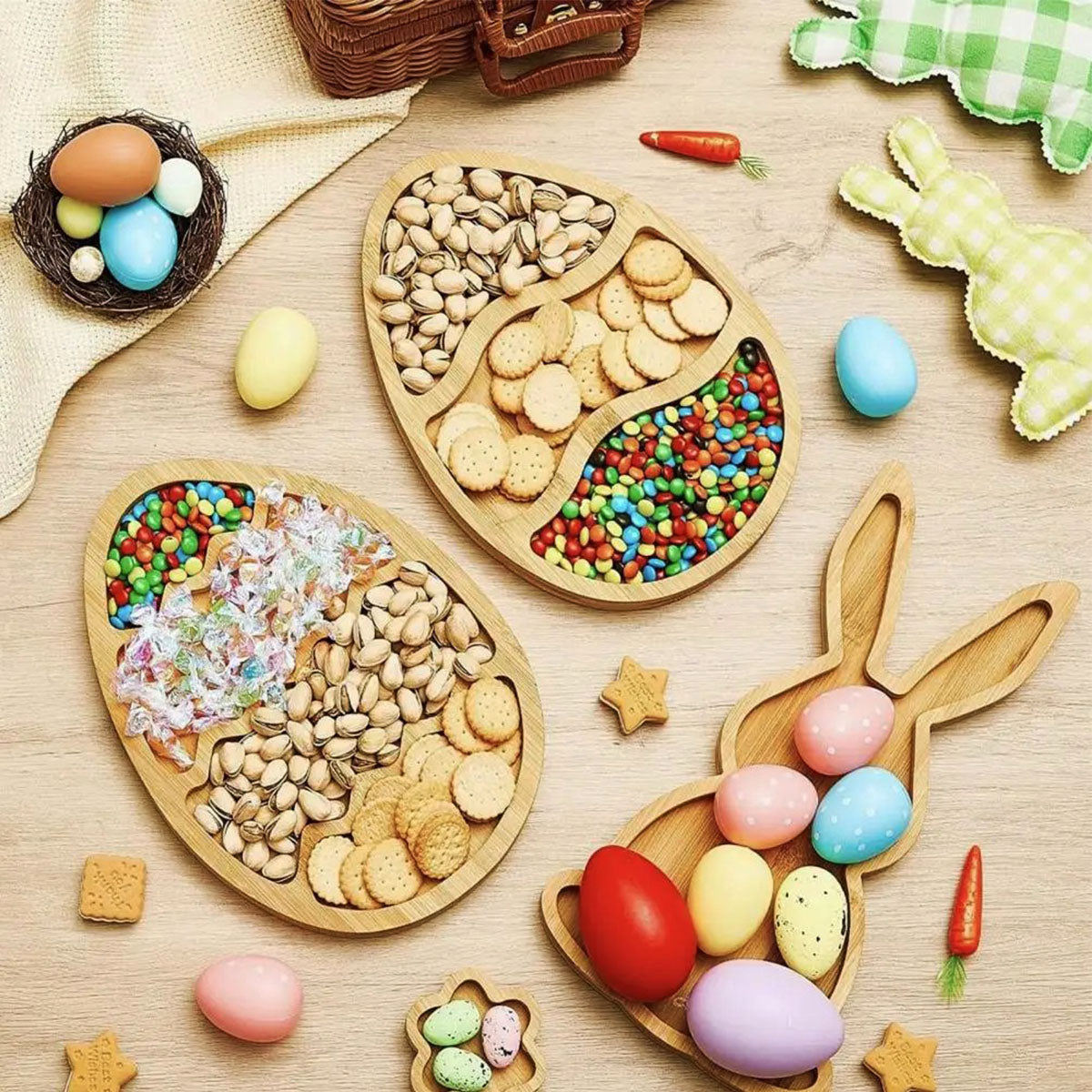 Hosting an Easter party? These adorable bunny and egg-shaped wooden trays are perfect for serving snacks, candies, cupcakes, and more. Made from premium wood, they're sturdy, easy to clean, and bring a festive touch to your table. A must-have for Easter celebrations, gifts, or everyday charm!