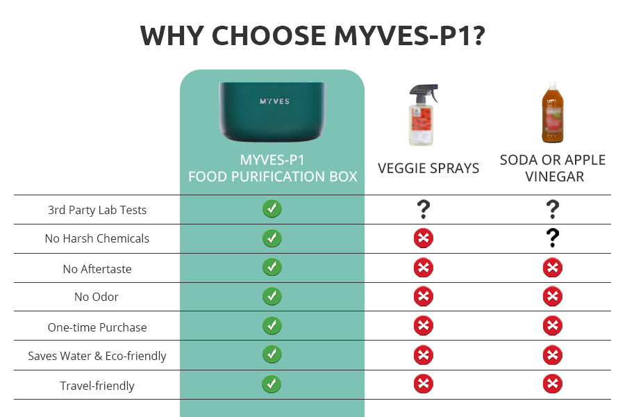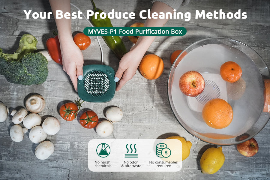 Produce is always at risk for various contaminants. Washing with water is NOT enough. Protect your health and safety using the MYVES-P1 Food Purification Box to thoroughly clean your fruits and veggies.