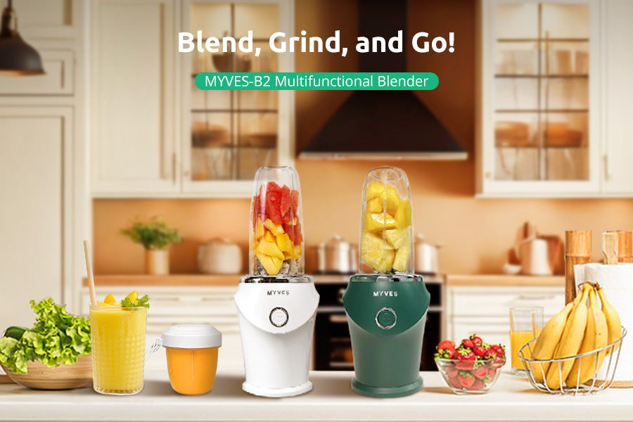The MYVES® B2 Multifunctional Blender Set is a powerful, convenient, and sleek kitchen tool designed for those who value efficiency, versatility, and quality. Whether you're blending up a post-workout smoothie, grinding coffee beans for your morning brew, or preparing a fresh salsa for taco night, this powerhouse blender meets all your blending needs.