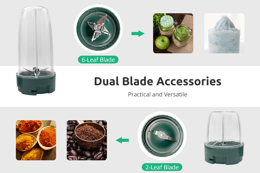 Switch between the 6-leaf blade for smooth blending and the 2-leaf blade for precise grinding. Perfect for all your culinary needs.